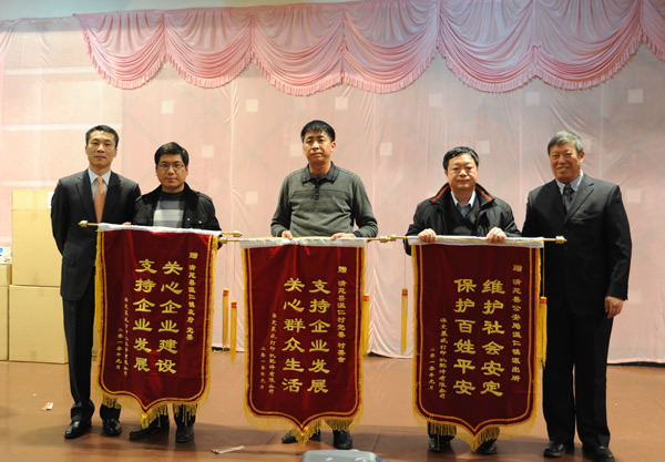 石總和徐廠長(zhǎng)還向保定市溫仁鎮(zhèn)政府、溫仁鎮(zhèn)派出所、溫仁村黨支部贈(zèng)送了錦旗,以感謝他們多年以來(lái)對(duì)工廠快速發(fā)展給予的支持與幫助。表彰大會(huì)結(jié)束后,工廠各部門員工展示了多項(xiàng)才藝表演,有小品、舞蹈、獨(dú)唱、情歌對(duì)唱、舞臺(tái)劇等,創(chuàng)意獨(dú)特,精彩紛呈,贏得了大家的陣陣掌聲。